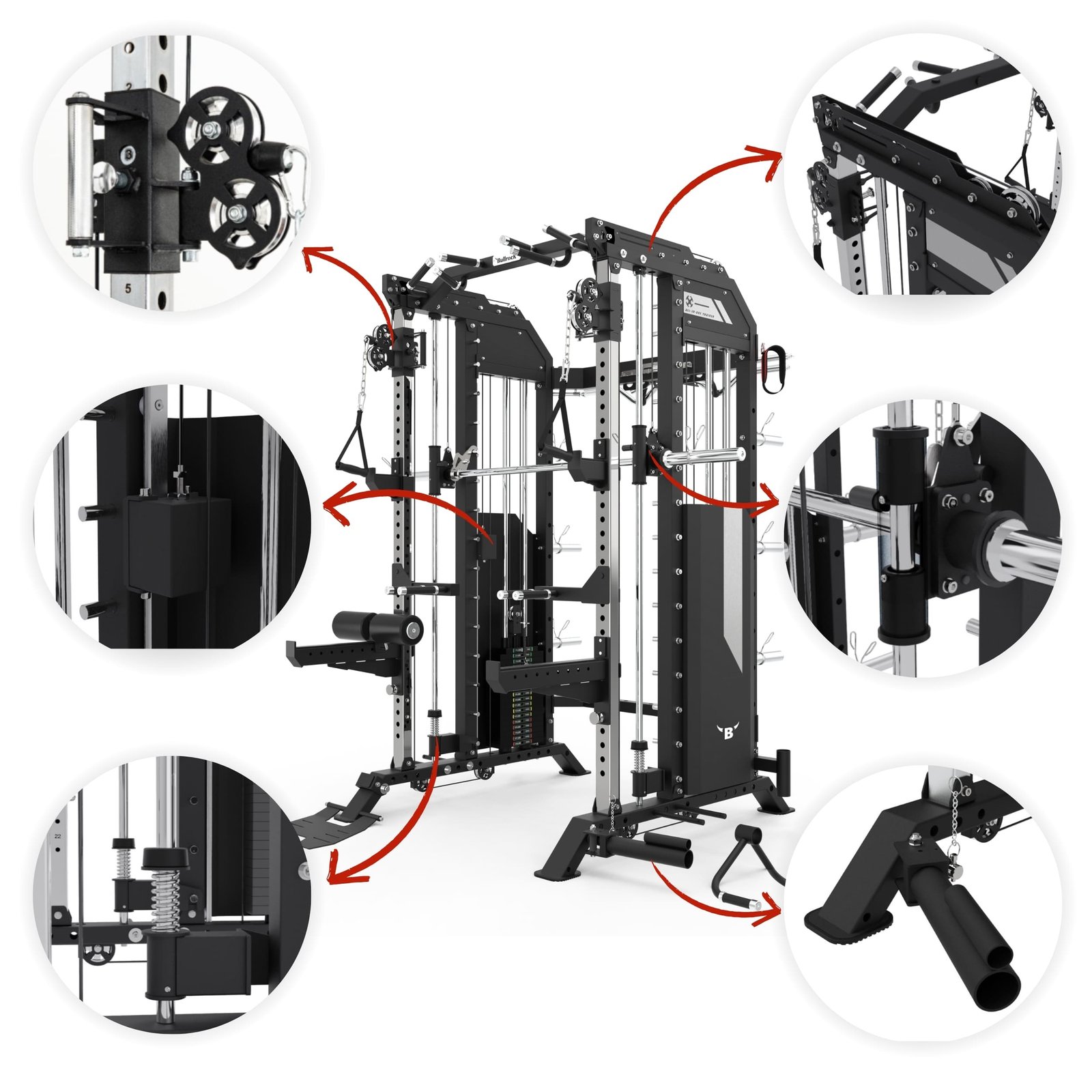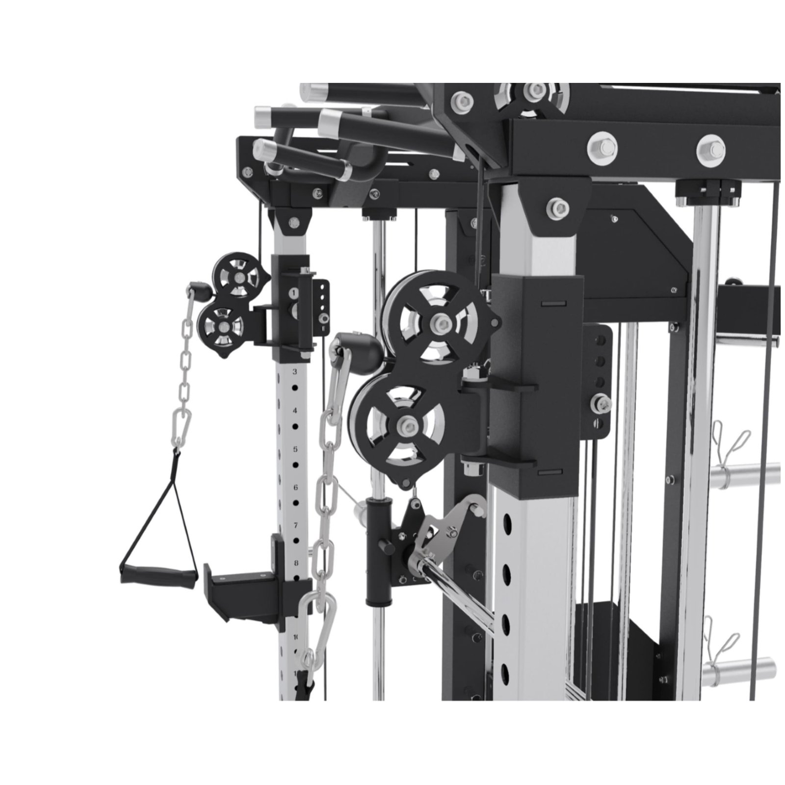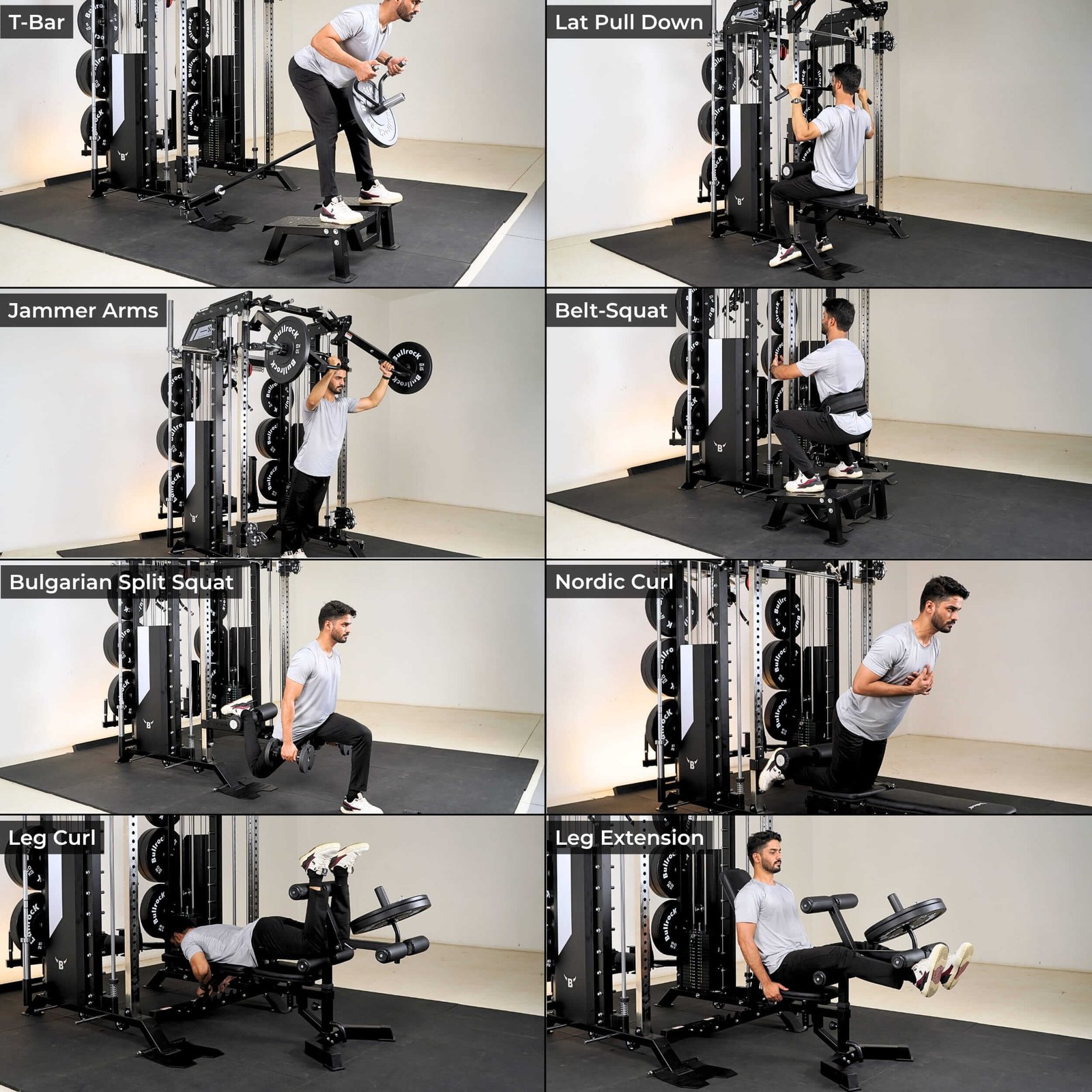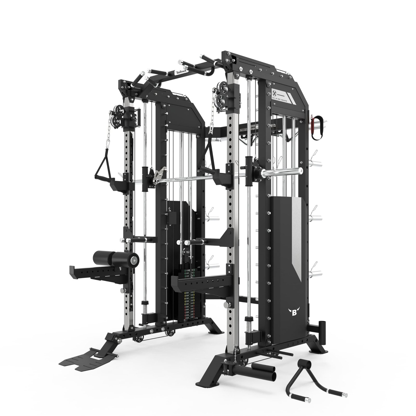 It integrates a Squat Rack, Functional Trainer, Smith Machine, Adjustable Dip Station, Low Row, Multi-Grip Pull-up Bar, and T-Bar Landmine—all in one compact unit. With optional attachments, you can expand your workout options without increasing space.