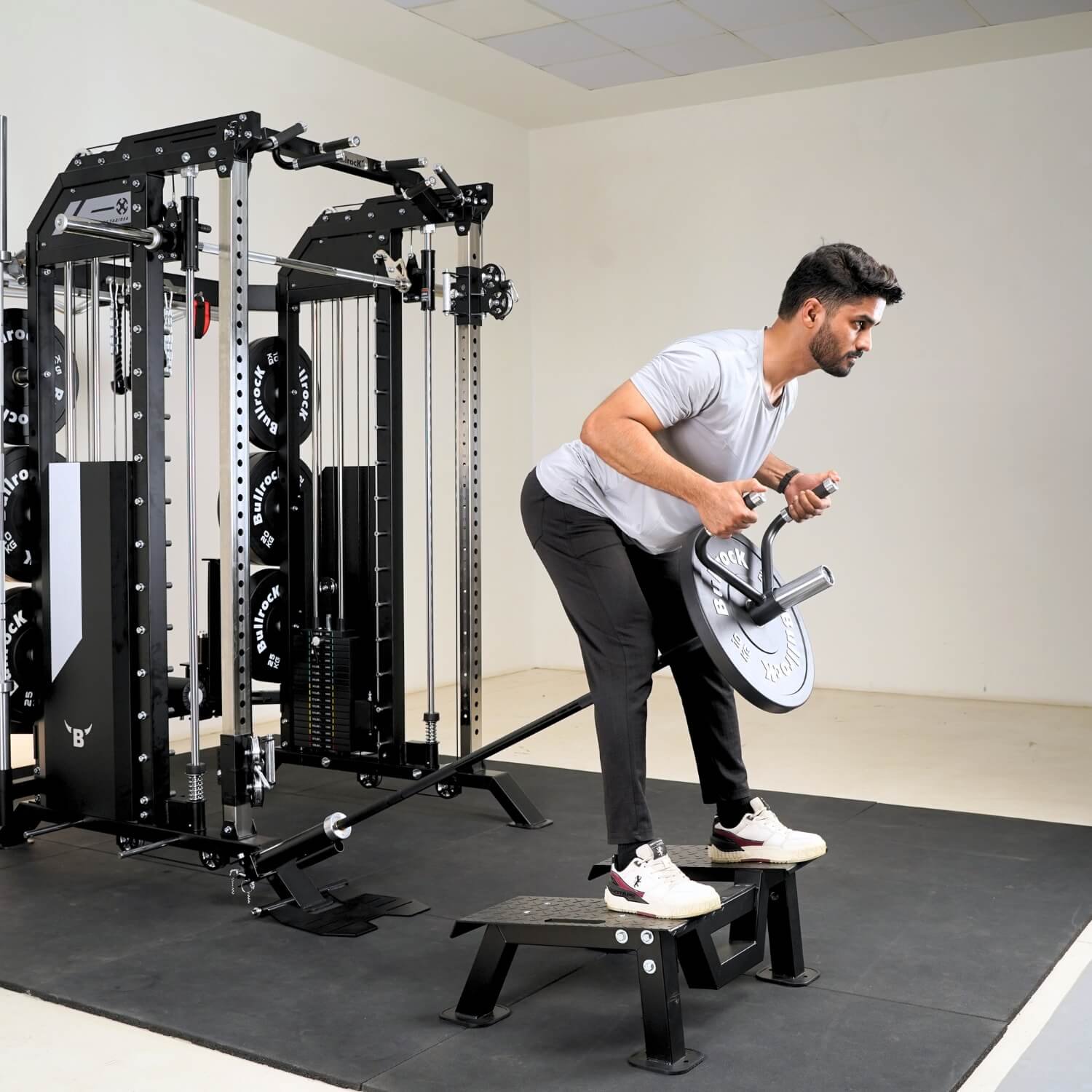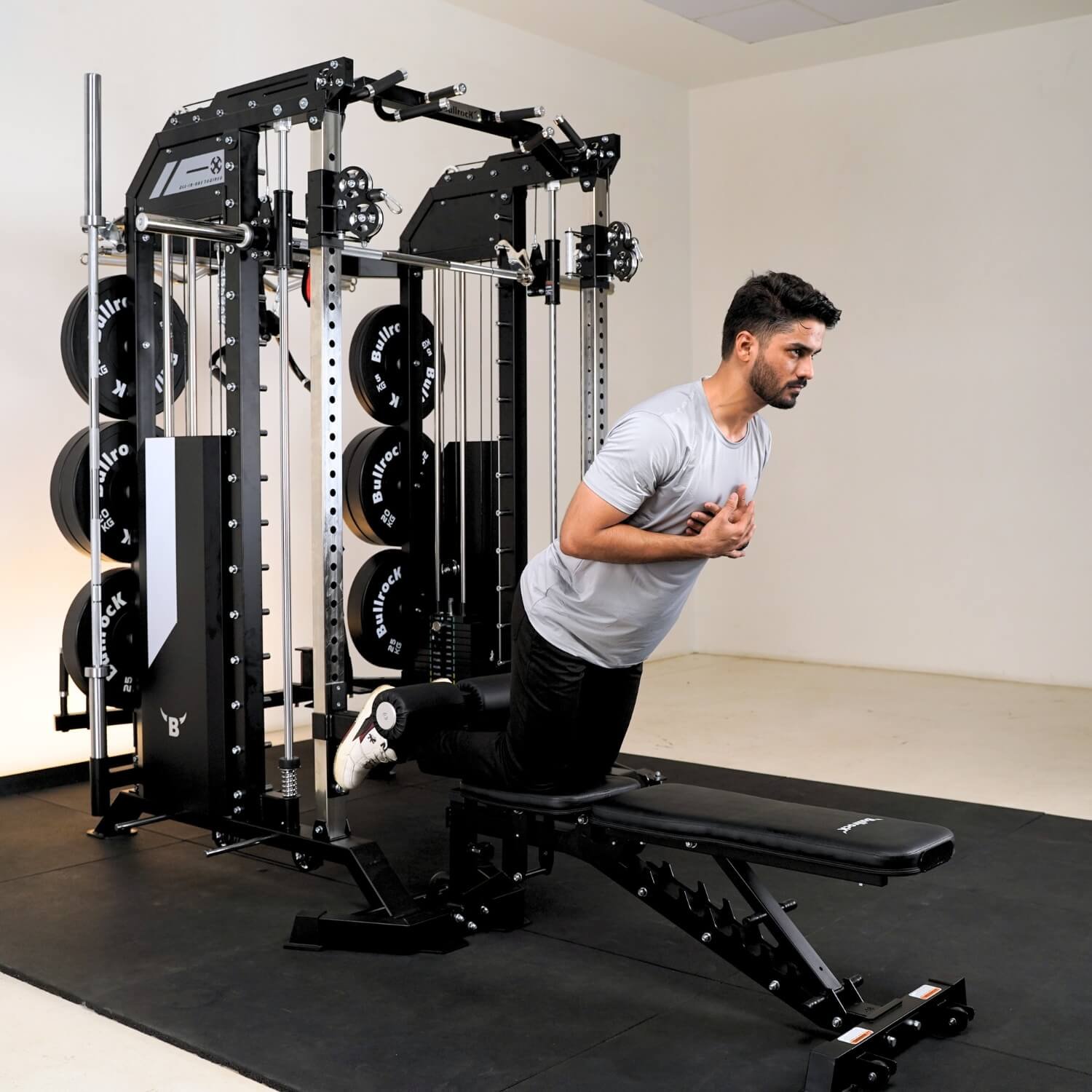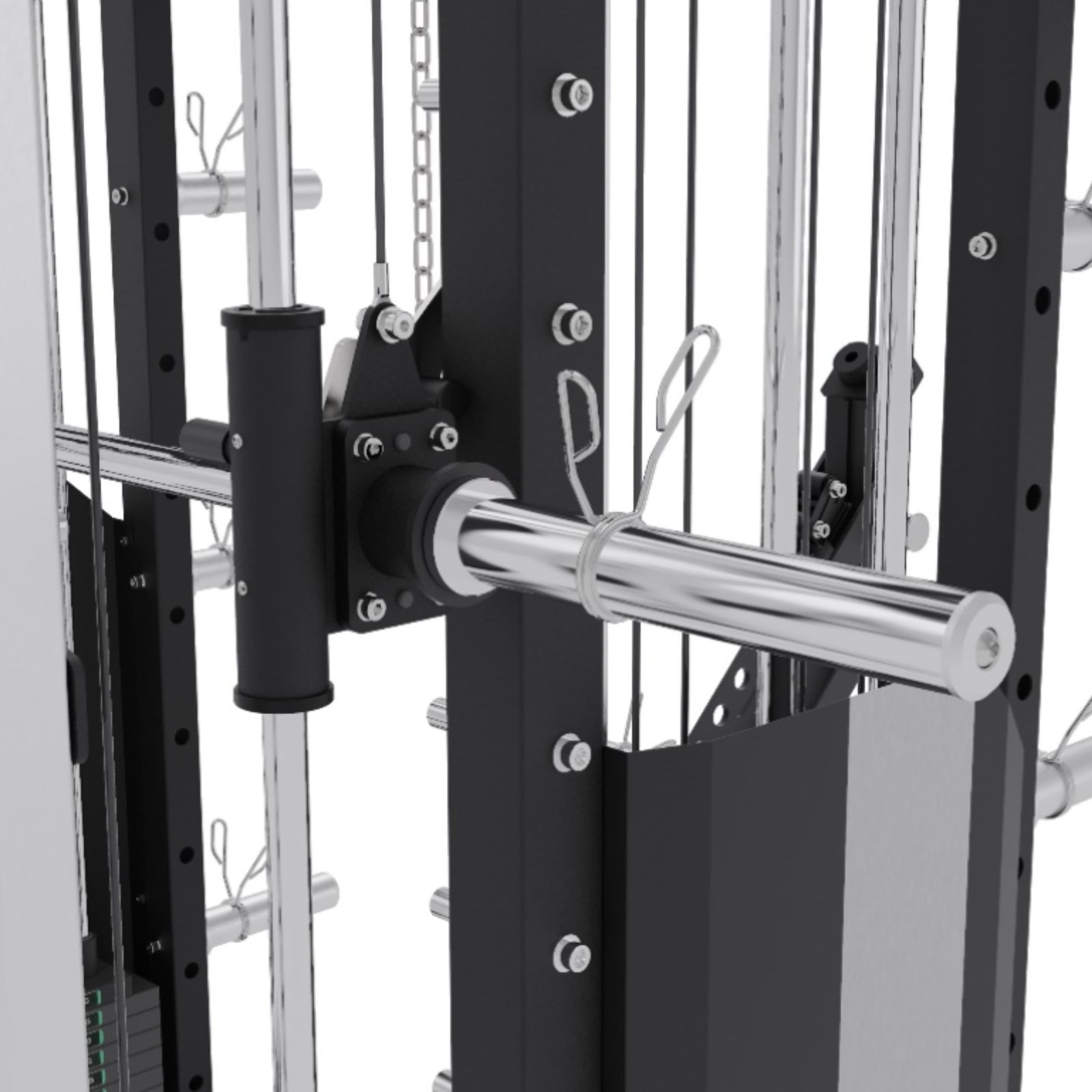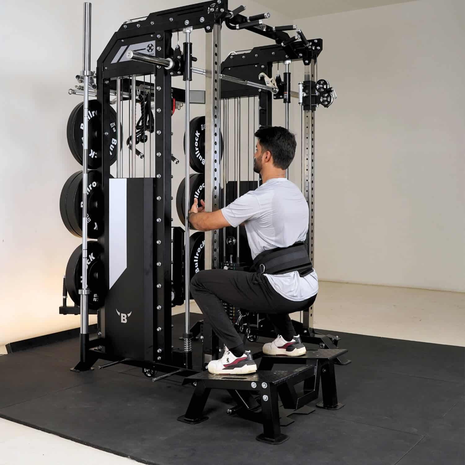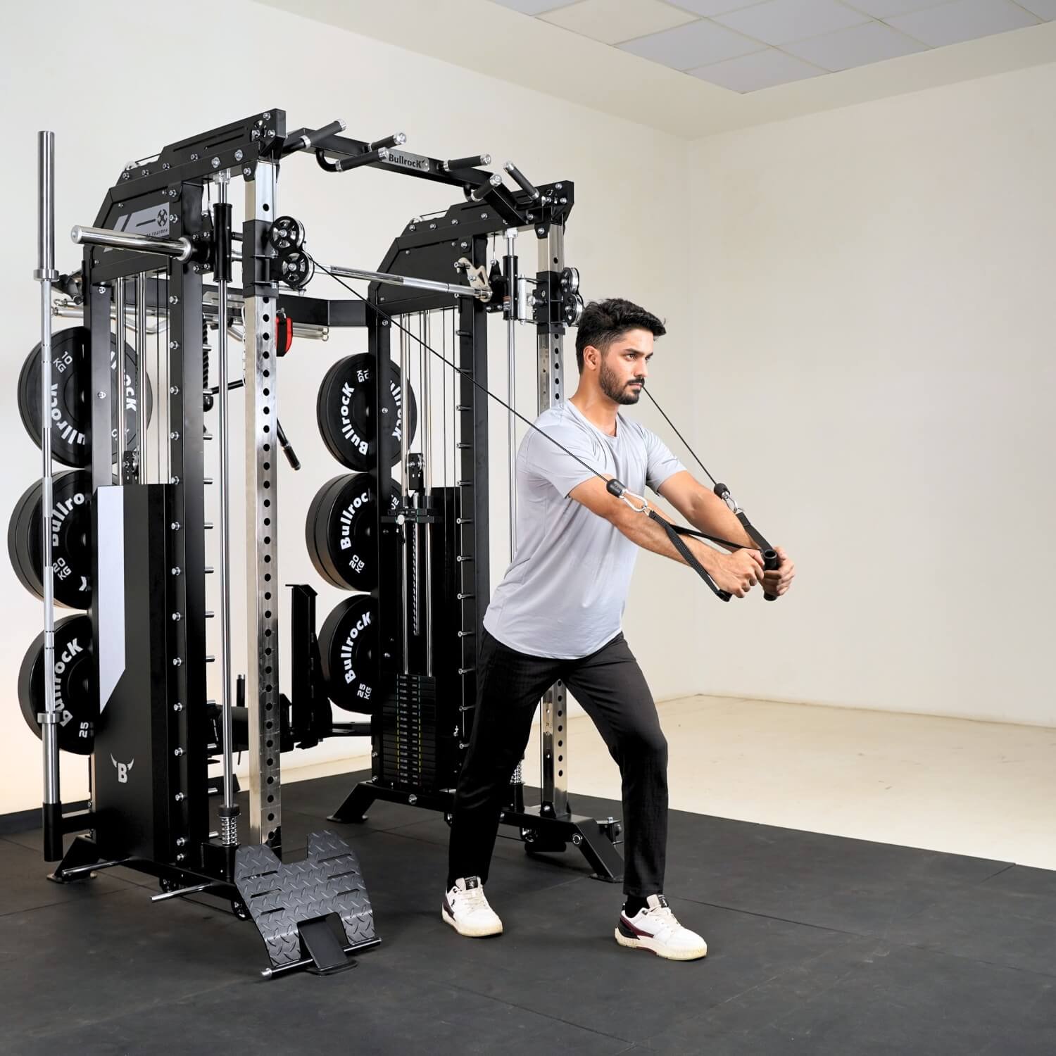 It integrates a Squat Rack, Functional Trainer, Smith Machine, Adjustable Dip Station, Low Row, Multi-Grip Pull-up Bar, and T-Bar Landmine—all in one compact unit. With optional attachments, you can expand your workout options without increasing space.