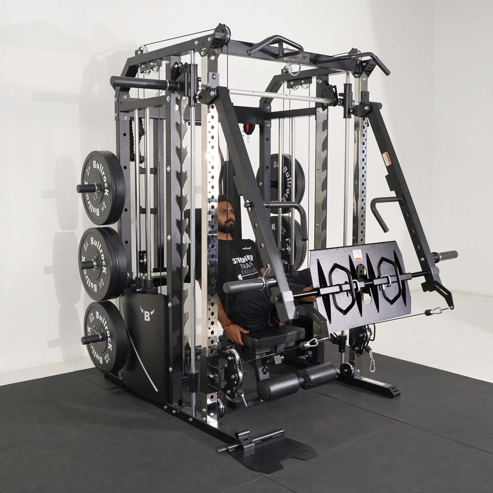 Compatible with All in One Trainer OX Pro 11 & OX Pro 21 this attachment provides a sturdy platform for performing leg press exercises with the smith machine, ensuring stability and control in your gym.